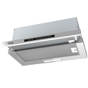 конструкция телескопическая • монтаж для встраивания • ширина 59.5 см • управление слайдерное/сенсорное • производительность мотора 900 м³/ч • цвет нержавеющая сталь