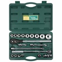 КомплектацияТорцевые головки 3/4? 12 шт.: 17, 19, 22, 24, 27, 30, 32, 36, 38, 41, 46, 50 мм; Вороток перекидной 475 мм; Удлинители 3 шт: 100, 200, 400 мм; Трещотка 24 зуба 500 мм; Карданный шарнир 105 мм; Адаптер переходной уменьшающий 3/4"Fх1/2"М; Адаптер переходной увеличивающий 3/4"Fх1"М; Пластиковый кейс.