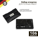 КомплектацияВ наборе 106 предметов:Биты: PH1х2, PH1.5х2, PH2х2, PH2.5х2, PH4х2T1, T2х2, T3х2, T4х2, T5х2, T6, T7, T8, T9, T10, T15, T20G3.8, G4.2H0.7, H0.9, H1.3, H1.5, H2, H2.5, H3, H3.5, H4, H4.5, H5, H6PZ1, PZ2, PZ3, PZ4U2.6х2, U3х2SQ0, SQ1, SQ2° 0.8, 1Y0.8х2, Y2х2, Y2.5х2, Y3Special PH2.5х2SL1х2, SL1.3х2, SL1.5х2, SL2х2, SL2.5х2, SL3х2, SL3.5х2, SL4P2х2, P5х2, P6х2, 2.0 / Pentalobe 0.8х2, 1.2х2, 1.5х2, 2.0TR6, TR7, TR8, TR9, TR10, TR15, TR20M2.5, M3, M3.5, M4, M4.5, M5, M5.5Triangle 2, 2.3, 2.6, 3РукояткаУдлинительГибкий удлинительПинцетМагнитПосадка бит: 1/8