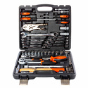 Головки торцевые подробно1/4": 4, 5, 6, 7, 8, 9, 10, 11, 12, 13 мм; вороток т-образный 1/4"; удлинитель 1/4": 100 мм; трещотка 1/4": 72 зуба; карданный шарнир 1/4"; 1/2": 10, 11, 12, 13, 14, 15, 16, 17, 18, 19, 22, 24, 27 мм; свечные 1/2": 16, 21 мм; удлинитель 1/2": 125, 250 мм; карданный шарнир 1/2"; трещотка 1/2": 72 зуба