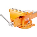 Тиски слесарные поворотные с наковальней, ширина губок 200 мм. Изготовлены из чугуна. Тиски предназначены для стационарной установки, поворотный механизм позволяет подобрать нужный угол установки детали для обработки. Не требуют специального обслуживания.