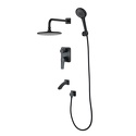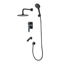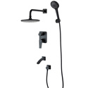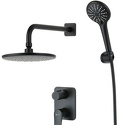 Устройство: душевая система • Смеситель: джойстик • Ручной душ (душевая лейка): размер 110 мм, настройки 3 шт • Верхний душ (тропический): размер 226 мм, настройки 1 шт • Комплектация: ручной душ, верхний душ, смеситель, шланг, крепление ручного душа