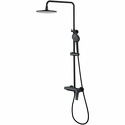Устройство: душевая система • Смеситель: джойстик • Ручной душ (душевая лейка): размер 109 мм, настройки 3 шт • Верхний душ (тропический): размер 226 мм, настройки 1 шт • Комплектация: ручной душ, верхний душ, смеситель, стойка, шланг, крепление ручного душа