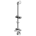 Стойка для душа Способ монтажа: вертикальный Высота: 693 мм Регулируемое по высоте крепление для лейки Регулируемая по высоте мыльница Регулируемый по высоте двойной крючок Цвет: хром