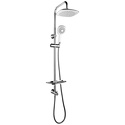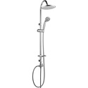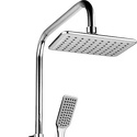 Устройство: душевая система • Ручная лейка: размер 100 мм, настройки 3 шт • Верхний душ: размер 250 мм, настройки 1 шт • Комплектация: лейка, стойка, шланг, крепление лейки, мыльница