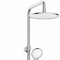 Устройство: душевая система • Ручная лейка: размер 104 мм, настройки 3 шт • Верхний душ: размер 256 мм, настройки 1 шт • Комплектация: ручной душ, стойка, шланг, крепление ручного душа, полка