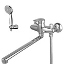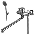 Назначение: универсальный • Конструкция: однорычажный • Монтаж: вертикальный • Подводка: жесткая • Монтажные отверстия: 2 отверстия • Форма излива: традиционная • Душевая лейка в комплекте: есть • Держатель для душевой лейки: настенный держатель • Аэратор: есть • Эксцентрики в комплекте: есть • Донный клапан в комплекте: есть
