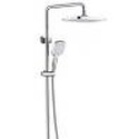 Устройство: душевая система • Смеситель: джойстик • Ручной душ (душевая лейка): размер 110 мм, настройки 3 шт • Верхний душ (тропический): размер 300 мм, настройки 1 шт • Комплектация: ручной душ, верхний душ, смеситель, стойка, шланг, крепление ручного душа