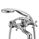 Покрытие - Хром, Встраиваемый - Нет, Аэратор - Есть, Термостат - Нет, Тип - Двухзахватный, S-образные эксцентрики - Есть, Назначение - Для ванны и душа, Количество монтажных отверстий - 2, Максимальный расход воды - 22.3, Поворотный излив - Нет, Форма излива - Традиционная, Присоединительный размер - 1\2", Материал корпуса - Латунь, Донный клапан - Нет, Тип подводки - Жесткая, Глубина - 166, Длина излива - 150, Комплектация - душевой шланг, ручной душ, Цвет - Серебристый