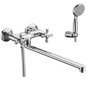 Назначение: универсальный • Конструкция: с раздельными клапанами • Монтаж: вертикальный • Клапан: керамический • Монтажные отверстия: 2 отверстия • Форма излива: традиционная • Душевая лейка в комплекте: есть • Держатель для душевой лейки: настенный держатель • Аэратор: есть