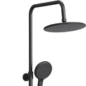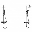 Устройство: душевая система • Смеситель: джойстик • Ручной душ (душевая лейка): размер 120 мм, настройки 4 шт • Верхний душ (тропический): размер 237 мм, настройки 1 шт • Комплектация: ручной душ, верхний душ, смеситель, стойка, шланг, крепление ручного душа, полка