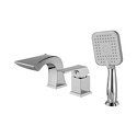 Поворотный излив - Нет, Тип - Однозахватный, Максимальный расход воды - 22, Присоединительный размер - 1\2", Материал корпуса - Латунь, Назначение - Для ванны и душа, Аэратор - Есть, Донный клапан - Нет, Форма излива - Каскадная, Количество монтажных отверстий - 3, Комплектация - Верхний душ, душевой шланг, Свинцовый отвес, Цвет - Серебристый, Ширина - 40.6, Тип подводки - Гибкая, Покрытие - Хром, Длина излива - 127, Термостат - Нет, Встраиваемый - Нет, Глубина - 16.7, Высота - 22.9