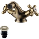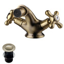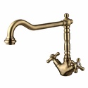 Назначение: кухонный • Конструкция: двухрычажный • Монтаж: горизонтальный • Клапан: керамический • Материал: покрытие - бронза • Подводка: гибкая • Монтажные отверстия: 1 отверстие • Форма излива: традиционная • Душевая лейка в комплекте: нет • Аэратор: есть • Донный клапан в комплекте: есть