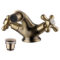 Назначение: для биде • Конструкция: однорычажный • Монтаж: горизонтальный • Клапан: керамический • Материал: покрытие - бронза • Подводка: гибкая • Монтажные отверстия: 1 отверстие • Форма излива: традиционная • Душевая лейка в комплекте: нет • Аэратор: есть • Донный клапан в комплекте: есть
