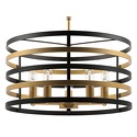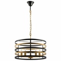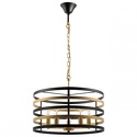 Подвесной светильник стиля модерн для гостиной, кабинета, прихожей или спальни имеет размеры 500x1250 мм. Арматура светильника окрашена в латунный и черный цвет. Лампы в комплекте - отсутствуют. В светильнике применяются лампы накаливания или светодиодная LED-лампа. Цвет плафонов - латунь, с матовой поверхностью. Материал плафонов - металл. Класс электробезопасности - I, степень пылевлагозащиты (IP) - 20. Максимальная мощность лампы (Вт) - 40. Светильник размещается на потолоке.