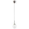 Подвесной светильник стиля модерн для гостиной, кабинета, кухни, прихожей или спальни имеет размеры 150x1370 мм. Арматура светильника окрашена в золотой бежевый цвет. Лампы в комплекте - отсутствуют. В светильнике применяются лампы накаливания или светодиодная LED-лампа. Цвет плафонов - белый, с матовой поверхностью. Материал плафонов - стекло. Класс электробезопасности - I, степень пылевлагозащиты (IP) - 20. Максимальная мощность лампы (Вт) - 40. Светильник размещается на потолоке.