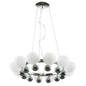 Подвесная люстра стиля модерн для гостиной или спальни имеет размеры 650x1000 мм. Арматура светильника окрашена в хромовый цвет. Лампы в комплекте - отсутствуют. В светильнике применяются галогеновая лампа или светодиодная LED-лампа. Цвет плафонов - белый, с матовой поверхностью. Материал плафонов - стекло. Класс электробезопасности - I, степень пылевлагозащиты (IP) - 20. Максимальная мощность лампы (Вт) - 40. Светильник размещается на потолоке.
