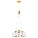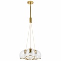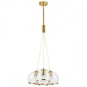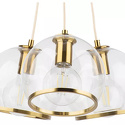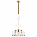 Подвесной светильник стиля модерн для гостиной, кабинета, кухни, прихожей или спальни имеет размеры 440x1960 мм. Арматура светильника окрашена в латунный цвет. Лампы в комплекте - отсутствуют. В светильнике применяются лампы накаливания или светодиодная LED-лампа. Цвет плафонов - неокрашенный с каймой, с прозрачной поверхностью. Материал плафонов - металл, стекло. Класс электробезопасности - I, степень пылевлагозащиты (IP) - 20. Максимальная мощность лампы (Вт) - 40. Светильник размещается на потолоке.