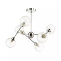 Люстра на штанге стиля техно для гостиной, кабинета или спальни имеет размеры 600x490 мм. Арматура светильника окрашена в хромовый цвет. Лампы в комплекте - отсутствуют. В светильнике применяются лампы накаливания или светодиодная LED-лампа. Цвет плафонов - неокрашенный, с прозрачной, рельефной поверхностью. Материал плафонов - стекло. Класс электробезопасности - I, степень пылевлагозащиты (IP) - 20. Максимальная мощность лампы (Вт) - 40. Светильник размещается на потолоке.