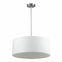 Подвесной светильник стиля модерн для гостиной, кабинета, прихожей или спальни имеет размеры 500 мм. Арматура светильника окрашена в серебрянный цвет. Лампы в комплекте - отсутствуют. В светильнике применяются лампы накаливания или светодиодная LED-лампа. Цвет плафонов - белый, с матовой поверхностью. Материал плафонов - текстиль. Класс электробезопасности - I, степень пылевлагозащиты (IP) - 20. Максимальная мощность лампы (Вт) - 60. Светильник размещается на потолоке.