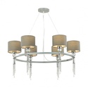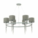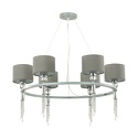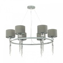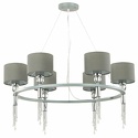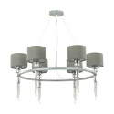 Подвесная люстра стиля классика для гостиной, кабинета или спальни имеет размеры 750x1000 мм. Арматура светильника окрашена в серый и хромовый цвет. Лампы в комплекте - отсутствуют. В светильнике применяются лампы накаливания или светодиодная LED-лампа. Цвет плафонов - серый, с матовой поверхностью. Материал плафонов - металл, текстиль. Класс электробезопасности - II, степень пылевлагозащиты (IP) - 20. Максимальная мощность лампы (Вт) - 60. Светильник размещается на потолоке.