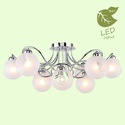 Люстра потолочная Lussole Iliamna GRLSP-8140 9x6Вт E14 Внешний вид и материал: Материал арматуры: металл; Материал плафона / абажура: Стекло; Стиль: Классика; Цвет арматуры: хром; Цвет плафона / абажура: белый; Общие характеристики: Количество лампочек: 9; Лампы в комплекте (Да/Нет): да; Линейка: Iliamna; Совместимые типы ламп: Светодиодная; Технические характеристики: Мощность одной лампы, Вт: 6; Мощность, Вт: 54; Площадь освещения, кв.м.: 18; Световой поток, лм: 4 050; Степень пылевлагозащиты, IP: IP21