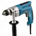 Мощный современный мотор, высокий крутящий момент при низких оборотах — эти технические характеристики дрели Makita DP4001 (БЗП), выделяют ее среди дрелей данного класса. Дрель Makita DP4001 (БЗП) отличается высоким качеством и надежностью, как впрочем и все инструменты Макита. Дрель Makita DP4001 (БЗП) применяют для сверления металла и дерева. Максимальные обороты дрели составляют 900 оборотов в минуту и регулируются с помощью куркового рычага. Это позволяет выбрать наиболее подходящую скорость сверления. В данной модели дрели Макита используется быстрозажимный патрон, что позволяет менять рабочие вставки довольно быстро. Двигатель дрели покрыт алюминиевым кожухом, что исключает перегрев двигателя, благодаря чему дрель Makita DP4001 (БЗП) отличается высокой надежностью. Удобная пистолетная ручка делает работу с дрелью очень удобной. При необходимости, можно использовать боковую прорезиненную ручку, ее можно установить под любым углом к корпусу дрели. Используя ограничитель глубины сверления, входящий в комплектацию дрели, можно без особых усилий сверлить отверстия абсолютно одинаковой глубины. Для удобства использования, дрель Makita DP4001 (БЗП) имеет специальную клипсу для крепления дрели к одежде. Сетевой шнур повышенной плотности и двойная изоляция дрели позволяет использовать дрель в электросети без заземления. Дрель Makita DP4001 (БЗП) отличный выбор для профессионального использования и в качестве дрели для дома.