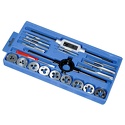 КомплектацияМетчики и плашки - 18 шт: M3×0.5, M4×0.7, M5×0.8, M6×1.0, M7×1.0, M8×1.25, M10×1.5, M12×1.75, 1/8NPT27; Метчикодержатель - 1 шт; Плашкодержатель 25 мм - 1 шт; Отвертка шлицевая - 1 шт.