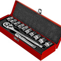 Набор: 12 шт • Головки: 6-ти гранные головки • Ключей-трещоток: 1 шт • Хранение: металлический кейс