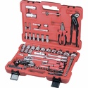 Набор: 117 шт • Ключи: шестигранные • Головки: 6-ти гранные головки, свечные • Ключей-трещоток: 2 шт • Хранение: пластиковый кейс