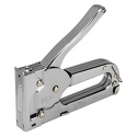 Мебельный степлер Matrix 40903 работает со скобами типа 53 размером 4-8 мм и предназначен для фиксации на деревянном основании тонких листовых материалов — оргалита, ДВП, ДСП, фанеры, пленки или утеплителя. Будет полезен в быту для перетяжки мебели или сборки шкафов. ПреимуществаКорпус изготовлен из высококачественной инструментальной стали, что обеспечивает инструменту долгий срок службы. Хромированное покрытие защищает поверхность корпуса от образования коррозии.