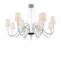 Массивный декор стеклянных граней выделяет светильники этой серии среди других моделей. Хромированную металлическую арматуру мягко оттеняют белые хлопковые абажуры. Рассеивая свет, они дарят уютное, атмосферное освещение. Классическая грациозность светильников выражена в элегантных изгибах рожков и подчеркнутой гармонии оттенков. Серия включает регулируемую по высоте подвесную люстру на 12 плафонов, две настольные лампы, а также бра на 1 и 3 плафона.