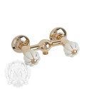 Назначение: душ • Конструкция: двухрычажный • Монтаж: вертикальный • Материал: латунь, покрытие - золото • Подводка: жесткая • Монтажные отверстия: 2 отверстия • Душевая лейка в комплекте: нет • Эксцентрики в комплекте: есть