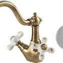 Назначение: для умывальника • Конструкция: двухрычажный • Монтаж: горизонтальный • Клапан: керамический • Материал: латунь, покрытие - бронза • Подводка: гибкая • Монтажные отверстия: 1 отверстие • Форма излива: традиционная • Душевая лейка в комплекте: нет • Аэратор: есть • Донный клапан в комплекте: есть