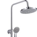 Устройство: душевая система • Смеситель: джойстик • Ручной душ (душевая лейка): размер 90 мм • Верхний душ (тропический): размер 200 мм, настройки 1 шт • Комплектация: ручной душ, верхний душ, смеситель, стойка, шланг, крепление ручного душа