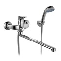Комплектация - Держатель душевой лейки, душевой шланг, ручной душ, Длина излива - 417, Материал корпуса - Латунь, Донный клапан - Нет, Покрытие - Хром, Тип - Однозахватный, Назначение - Для ванны и душа, Встраиваемый - Нет, Количество монтажных отверстий - 2, Термостат - Нет, Присоединительный размер - 1\2", Поворотный излив - Да, Форма излива - Традиционная, S-образные эксцентрики - Есть, Тип подводки - Жесткая, Аэратор - Есть, Высота - 15.7, Глубина - 43.1, Цвет - Серебристый, Ширина - 21.5