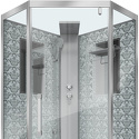 Закрытая кабина • угловая • двери распашные • гидромассаж • тропический душ • электронное управление • вентилятор