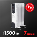 Тип: масляный радиатор • Мощность: 1500 Вт • Напряжение питания: 220 В, 240 В • Размеры (ШxВxГ): 340x550x240 мм • Регулировка мощности: есть • Уровни мощности: 600 Вт 900 Вт 1500 Вт Вт • Площадь обогрева: 15 м • Количество секций радиатора: 7 • Безопасность: защита от перегрева • Управление: механическое • Термостат: есть • Влагозащита: есть • Колесики: есть • Ручка: есть