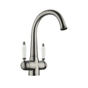 Комплектация - Смеситель, комплект подводки, полный набор креплений для подключения, инструкция, гарантийный талон, салфетка из микрофибры, Тип - Двухзахватный, Покрытие - PVD покрытие, Поворотный излив - Да, Длина излива - 200, Коллекция - Luxury, Материал корпуса - Латунь, Количество монтажных отверстий - 1, Форма излива - Традиционная, Назначение - Для мойки, Присоединительный размер - 1\2", Цвет - Серебристый, Высота излива - 197, Тип подводки - Гибкая, Аэратор - Есть, Ширина - 15.2, Высота - 30