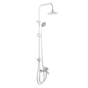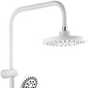 Устройство: душевая система • Смеситель: джойстик • Ручной душ (душевая лейка): размер 100 мм, настройки 5 шт • Верхний душ (тропический): размер 200 мм, настройки 2 шт • Комплектация: ручной душ, верхний душ, смеситель, стойка, шланг, крепление ручного душа