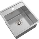 Форма чаши: прямоугольная • Материал: нерж. сталь • Количество чаш: 1 основная • Установка: врезная • Глубина чаши: 18.8 см • Измельчитель пищевых отходов: нет • Размеры: 47x44 • Мотажное отверстие: 47x44 • Диаметр сливного отверстия: 3 "