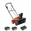 Комплектация- Снегоуборщик;- Аккумуляторная батарея: 2 шт.;- Зарядное устройство на два слота;- Инструкция.