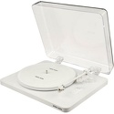 ременной привод • 33 1/3 • 45 об/мин • электронное переключение скоростей • встроенный фонокорректор • тонарм поворотный (прямой) • картридж с подвижным магнитом (MM) • цвет белый