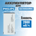 Производитель: Philips Модель: AB2000AWMC - технология: li-ion - емкость: 2000 мач - тип: стандартная - напряжение: 3.7 в - Технология: Li-Ion Описание