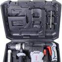 Комплект поставки- Перфоратор;- Ограничитель глубины сверления;- Боковая рукоятка;- Паспорт;- Упаковка;- Бур;- Долото;- Смазка ударного механизма;- Ключ для пластиковой заглушки;- Кейс пластмассовый.