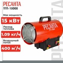 Производитель: Ресанта Модель: ТГП-15000 - Тепловая пушка - способ нагрева: газовый - макс. мощность 18 кВт - ручка - термостат Описание
