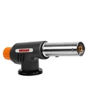 Газовая горелка-насадка REXANT GT-19 с пьезоподжигом. Благодаря наличию пьезоподжига, такой горелкой удобно пользоваться одной рукой. Отличается от других горелок серии кнопкой пьезоподжига, объединенной с вентилем регулировки подачи газовой смеси. Для инициации пьезоподжига нужно нажимать на вентиль. Рекомендуется для работы с термоусаживаемыми трубками, перчатками, муфтами; для плавления и сварки изделий из пластиков и стекла; удаления краски; обработки поверхностей на производстве и в лабораторных