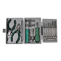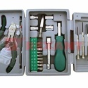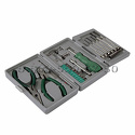 Комплектация- тонкогубцы, имеют возвратную пружину;- кусачки, имеют возвратную пружину;- пинцет;- отвертка со сменными наконечниками - 10 шт. (TORX, крестообразные, шлицевые);- удлинитель для бит;- торцевые головки – 4 шт.;- удлинитель для торцевых головок;- часовые отвертки для работы с малоразмерными деталями - 6 шт. (4 шлицевых и 2 крестообразных).