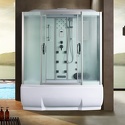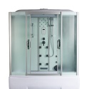 Закрытая кабина • комбинированная • угловая • двери раздвижные • гидромассаж • баня • сауна • тропический душ • электронное управление • вентилятор • 80x150x218 см