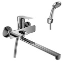 Комплектация - Держатель душевой лейки, душевой шланг, ручной душ, Материал корпуса - Латунь, Термостат - Нет, Назначение - Для ванны и душа, Покрытие - Хром, Тип - Однозахватный, Присоединительный размер - 1\2", Коллекция - RS, Тип подводки - Жесткая, Количество монтажных отверстий - 2, S-образные эксцентрики - Есть, Форма излива - Традиционная, Поворотный излив - Да, Донный клапан - Нет, Аэратор - Есть, Цвет - Серебристый, Высота - 16.8, Длина излива - 370, Ширина - 19.4